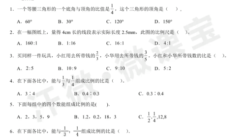 春季六年级 比例 第五节 课后作业 上