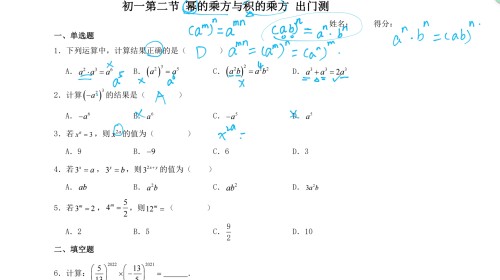 初一第2节幂的乘方与积的乘方出门测