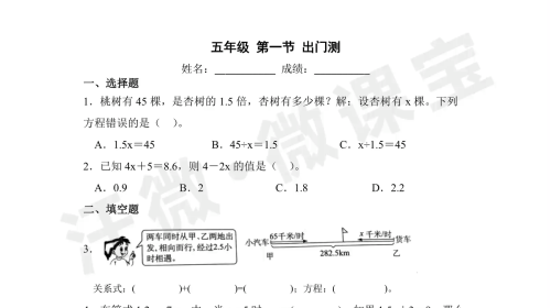 24春季 五年级第一节出门测