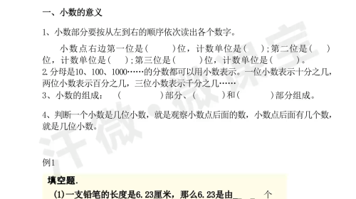 26寒假 四年级 第6讲 小数的意义和性质初步