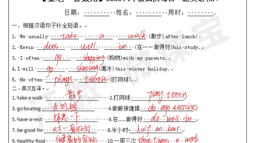 六年级英语国庆打卡8