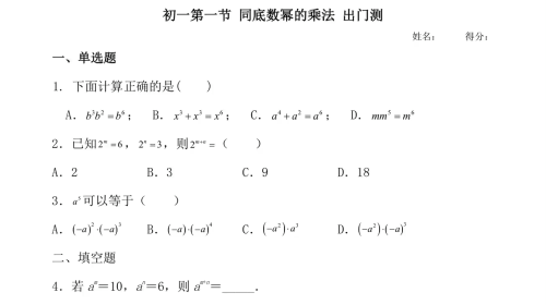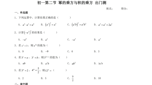 寒假初一第2节-幂的乘方与积的乘方复习视频
