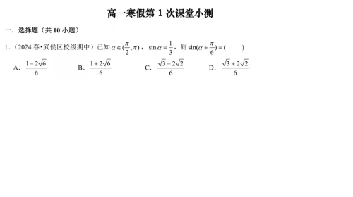 镭霆高一寒假小测1视频讲解