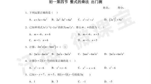 初一第4节整式的乘法出门测