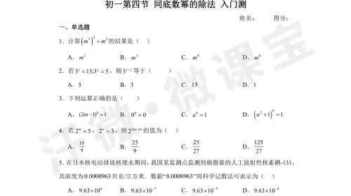 初一第4节同底数幂的除法 入门测