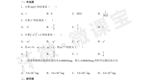初一第3节 同底数幂的除法 出门测