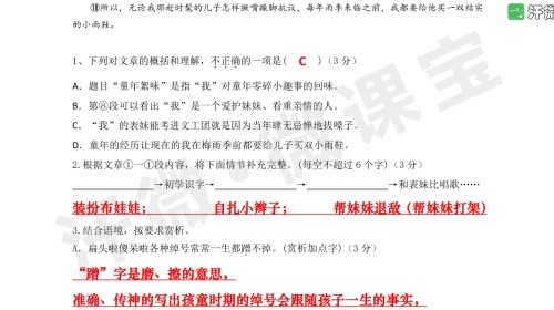 【师版】五年级记叙文阅读针对性练习