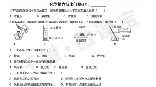 6寒假化学第六节出门测