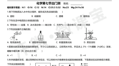 7寒假化学第七节出门测