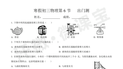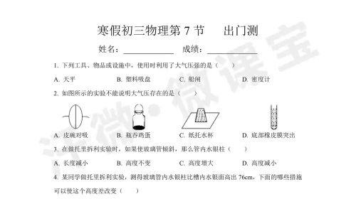 寒假初三物理第7节 出门测
