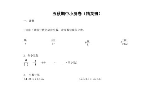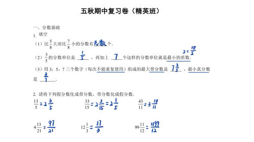 五秋期中复习卷
