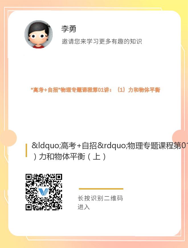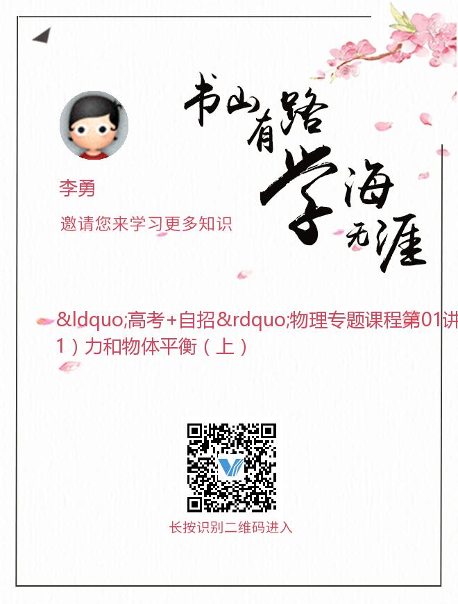 正在播放:“高考+自招”物理专题课程第01讲:(1)力和物体平衡(上)