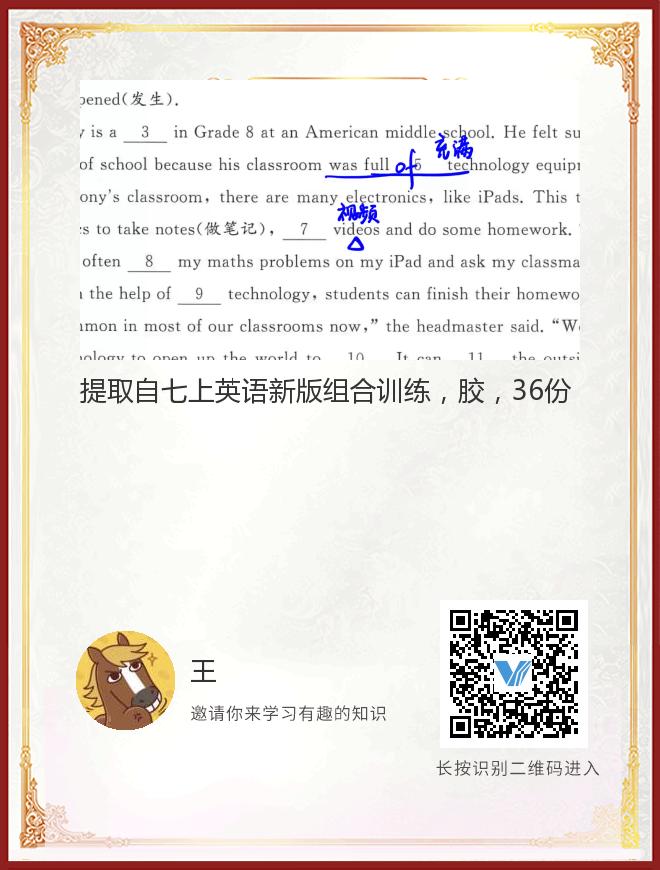提取自七上英语新版组合训练,胶,36份