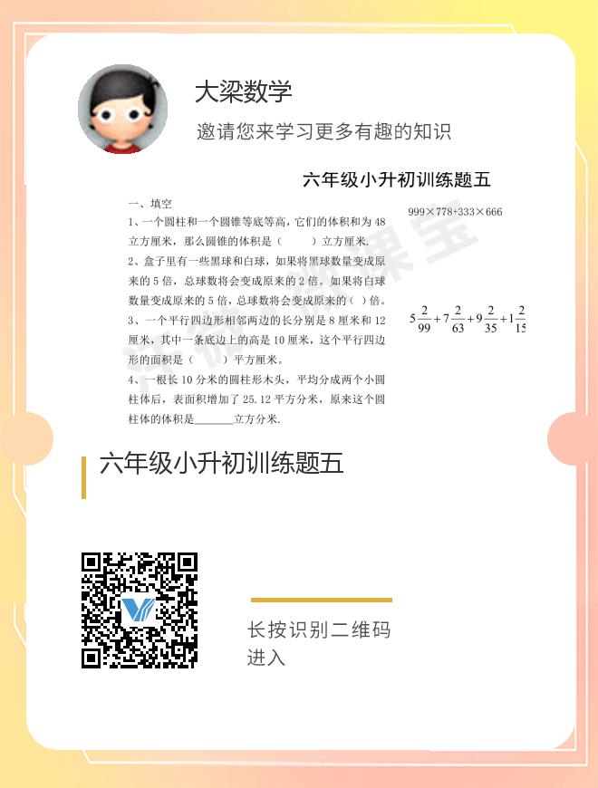 六年级小升初训练题五