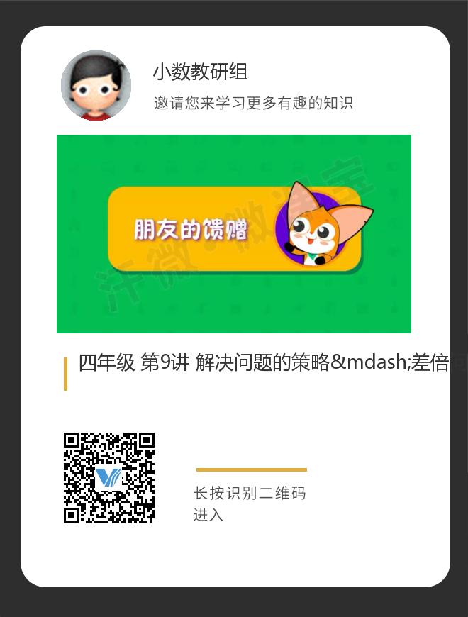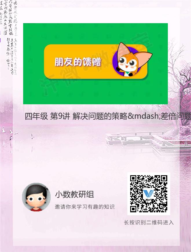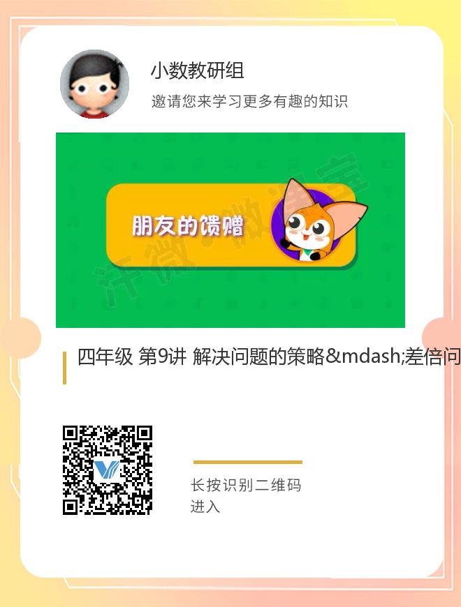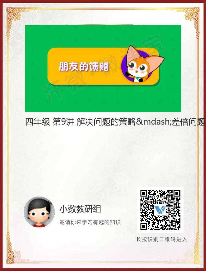 正在播放:四年级 第9讲 解决问题的策略—差倍问题