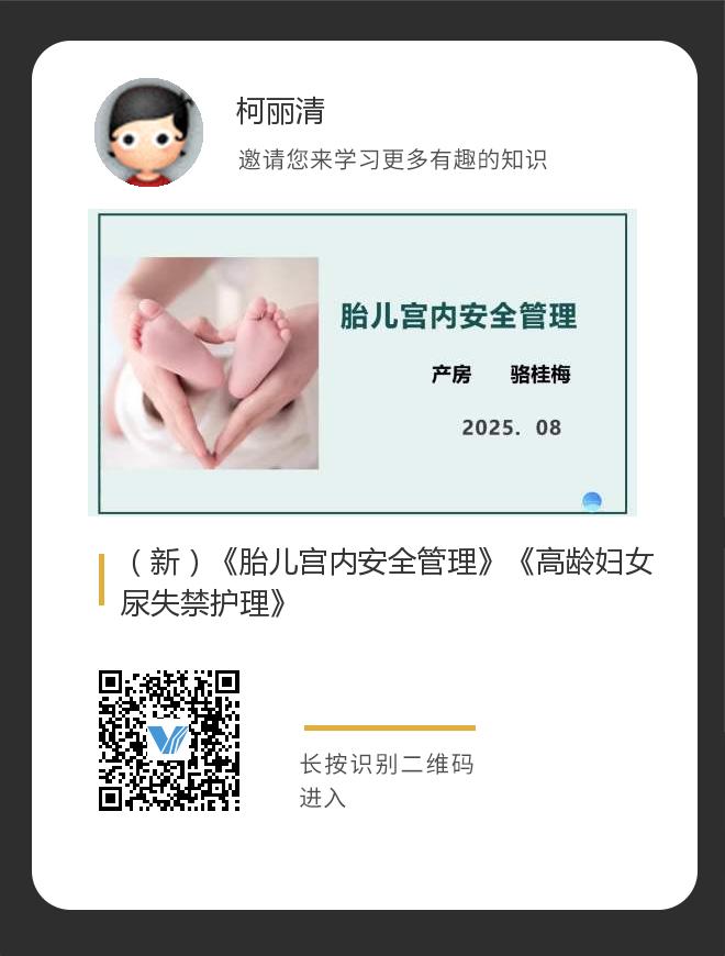 正在播放:(新)《胎儿宫内安全管理》《高龄妇女尿失禁护理》