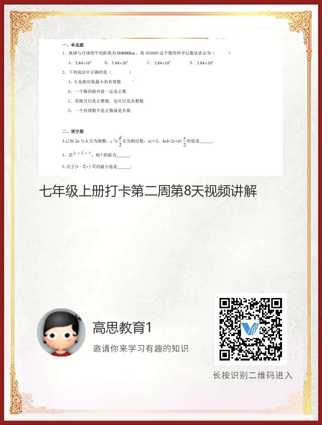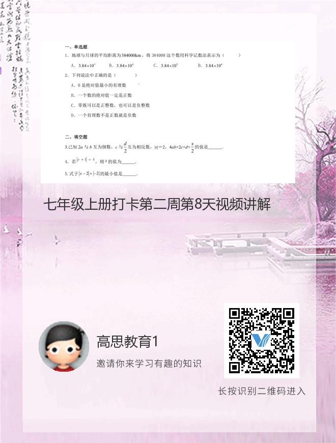 正在播放:七年级上册打卡第二周第8天视频讲解