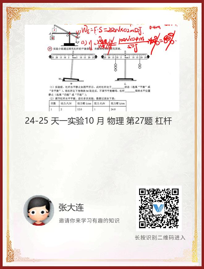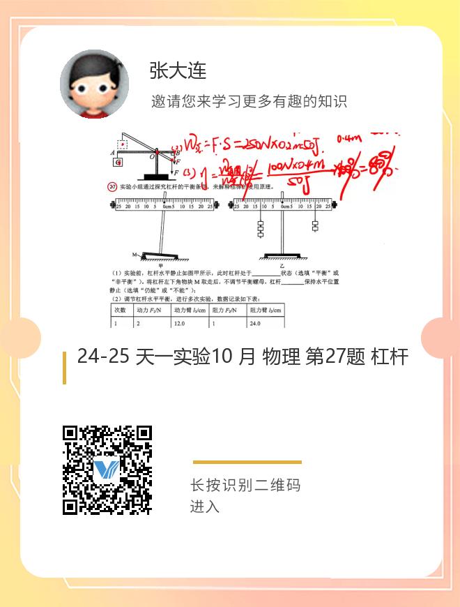 24-25 天一实验10 月 物理 第27题 杠杆