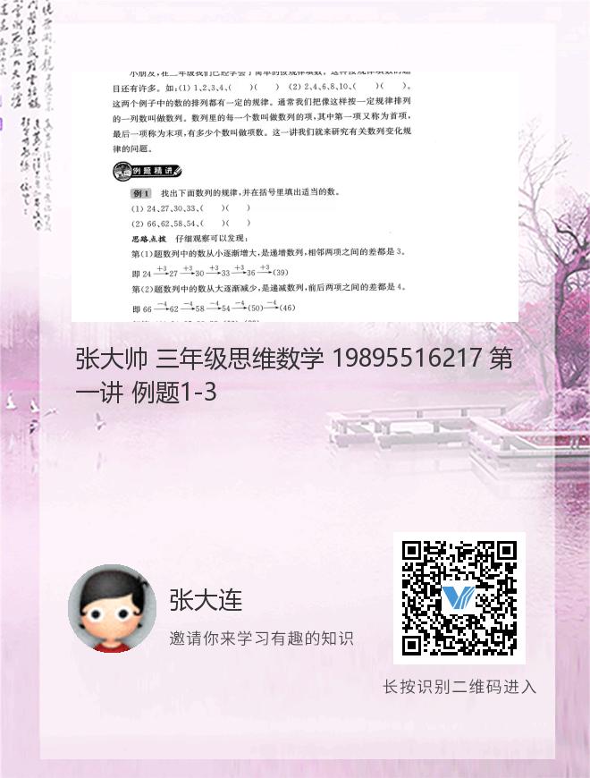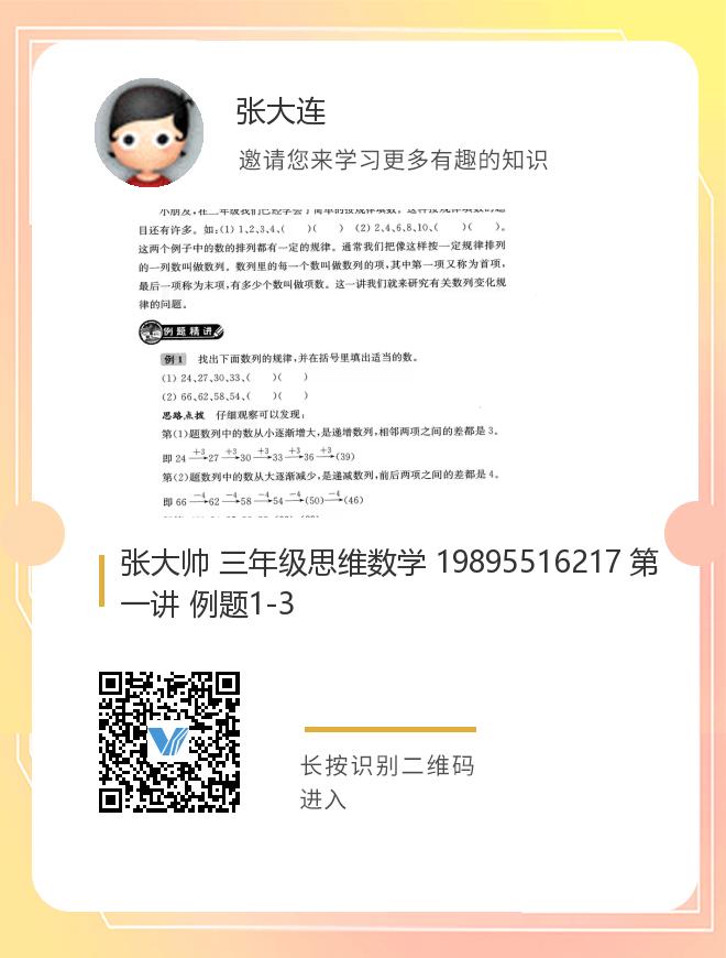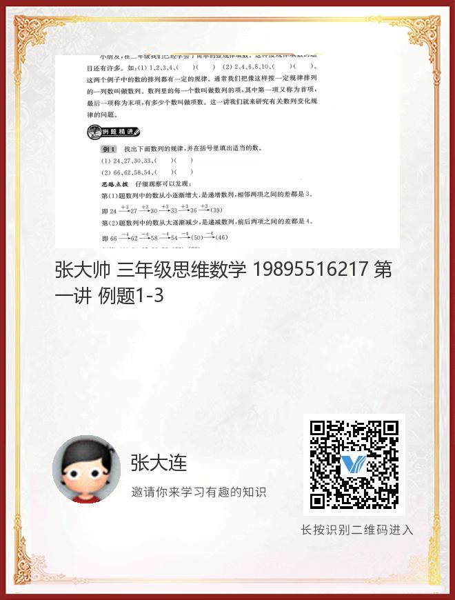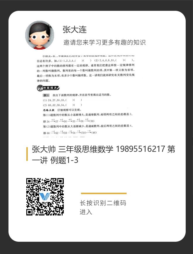 张大帅 三年级思维数学 19895516217 第一讲 例题1-3