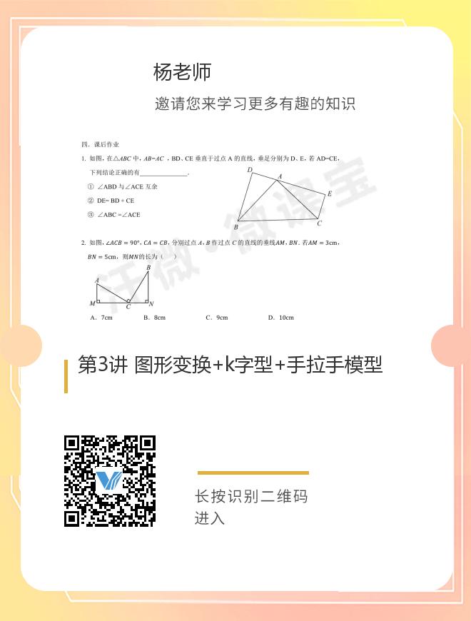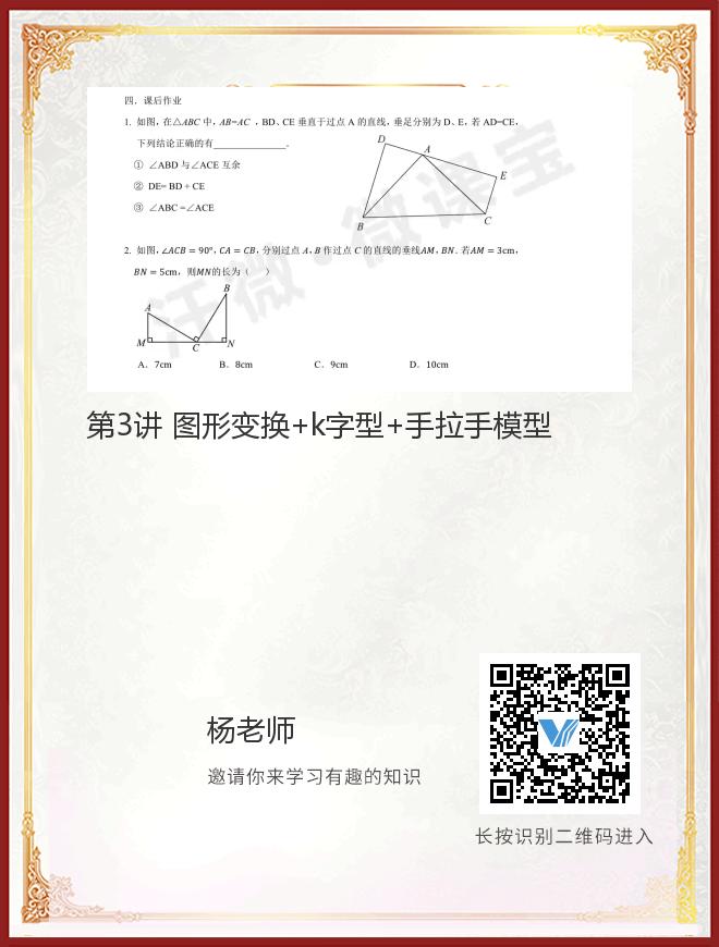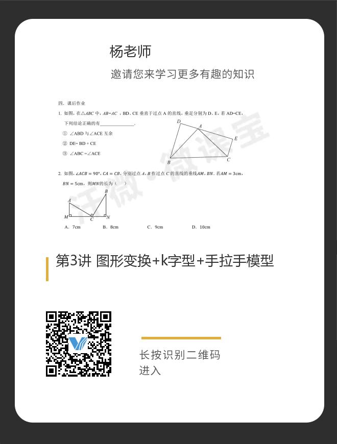 正在播放:第3讲 图形变换+k字型+手拉手模型