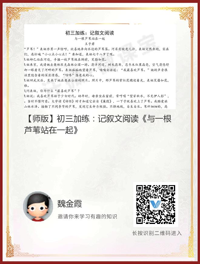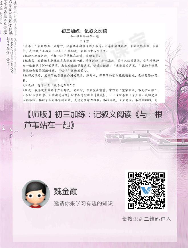 【师版】初三加练:记叙文阅读《与一根芦苇站在一起》