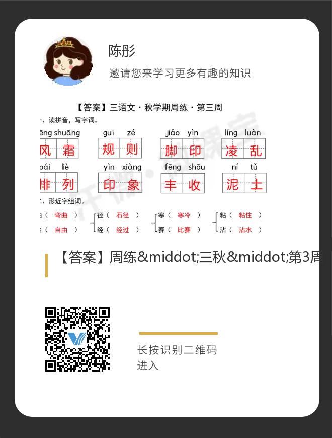 【答案】周练·三秋·第3周