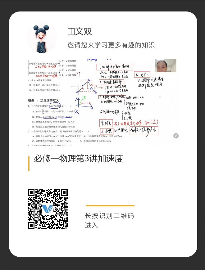 正在播放:必修一物理第3讲加速度