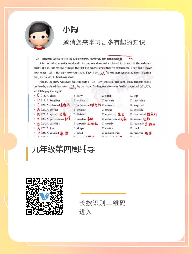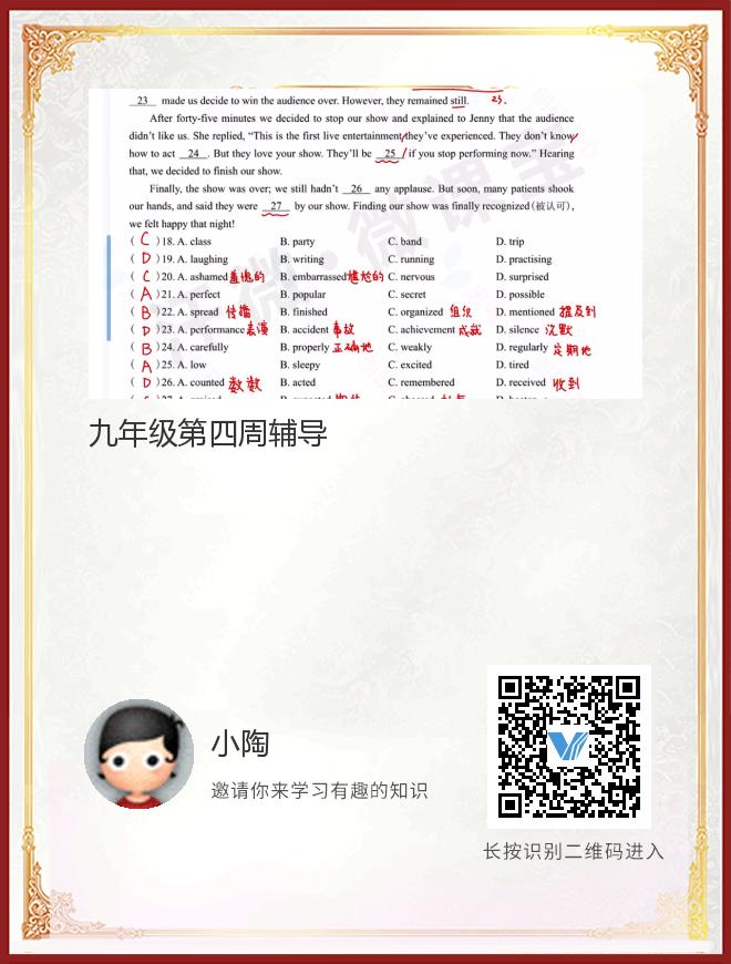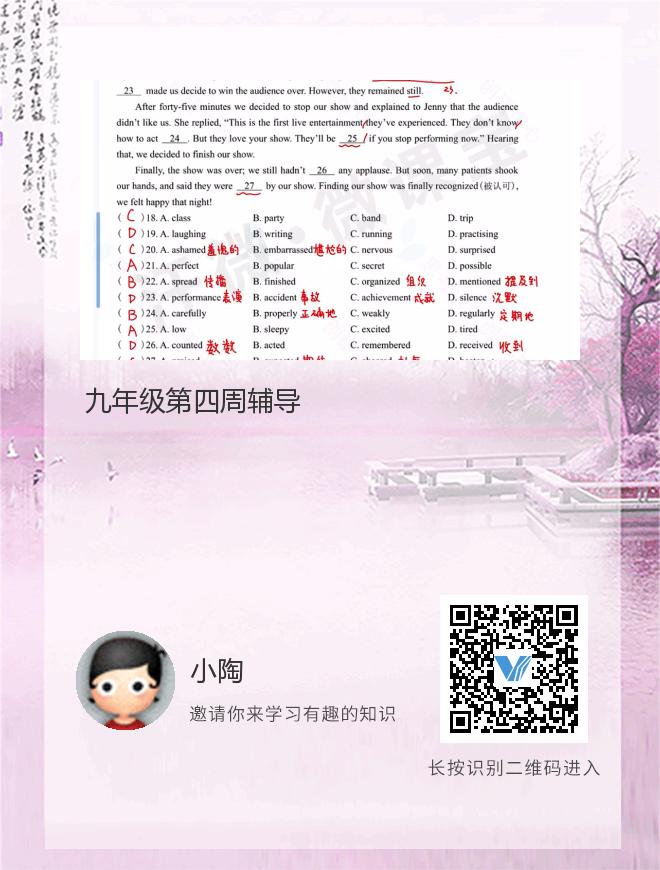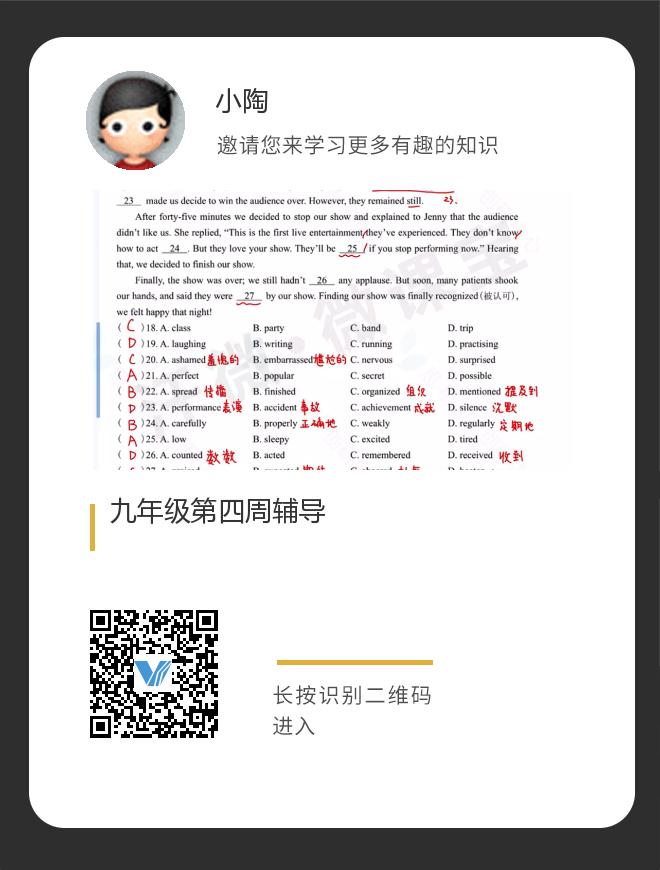 九年级第四周辅导