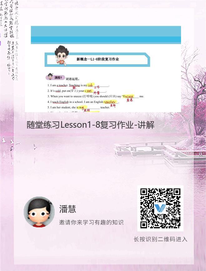 正在播放:随堂练习Lesson1-8复习作业-讲解