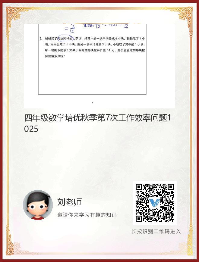 四年级数学培优秋季第7次工作效率问题1025