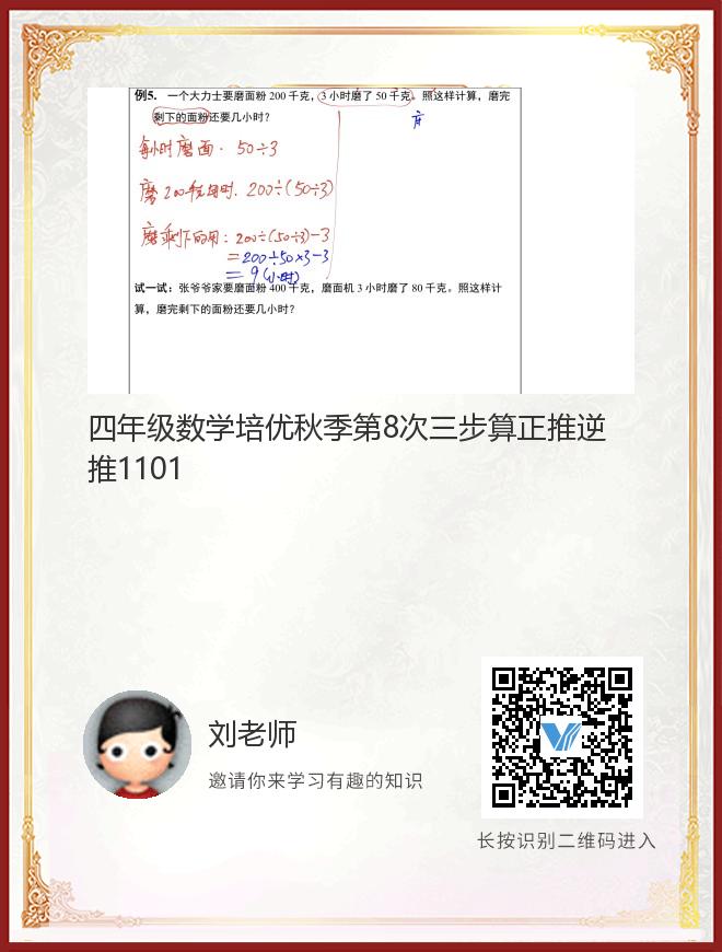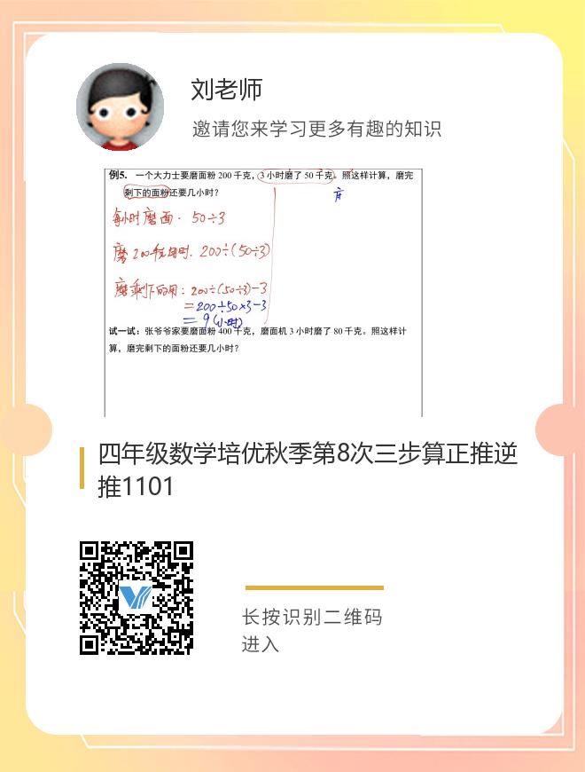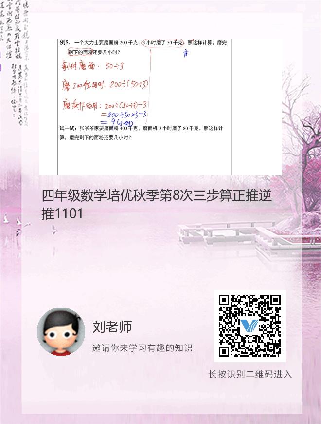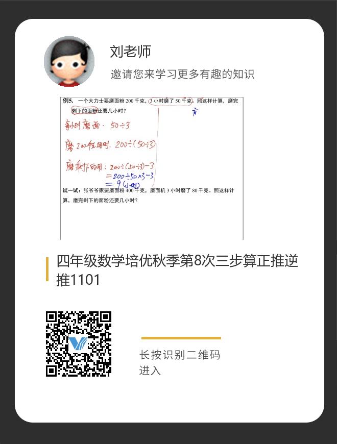 正在播放:四年级数学培优秋季第8次三步算正推逆推1101