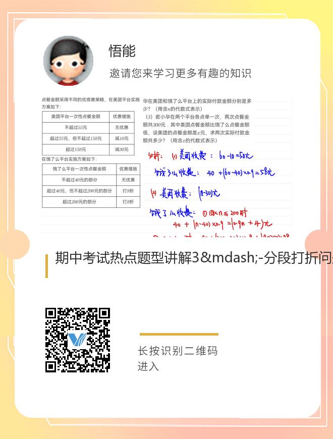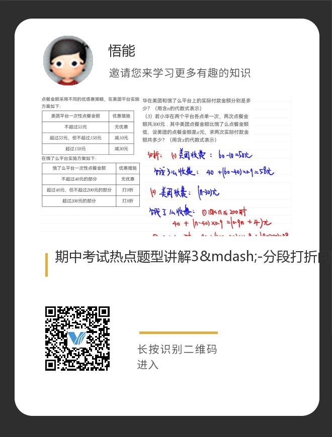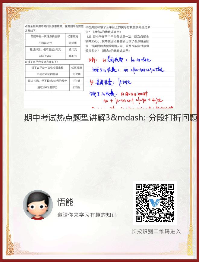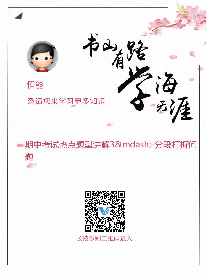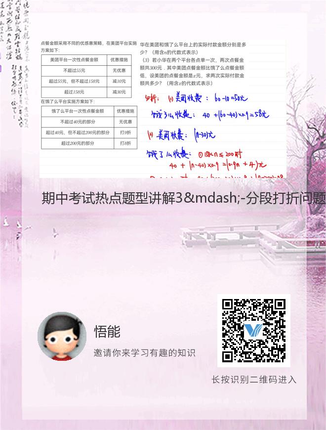 正在播放:期中考试热点题型讲解3—-分段打折问题