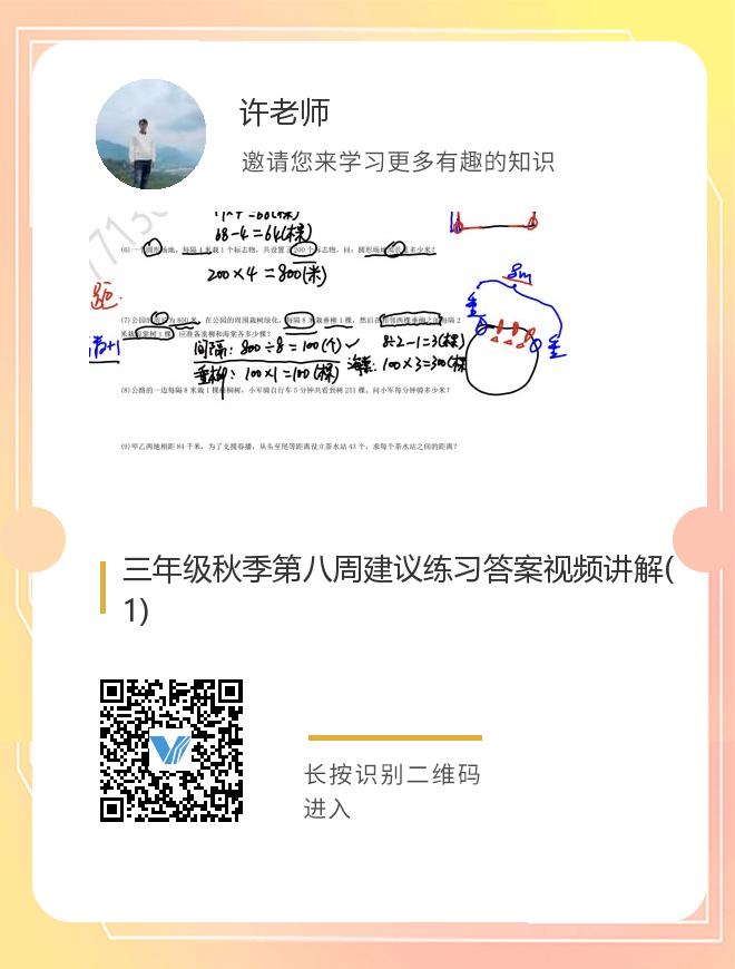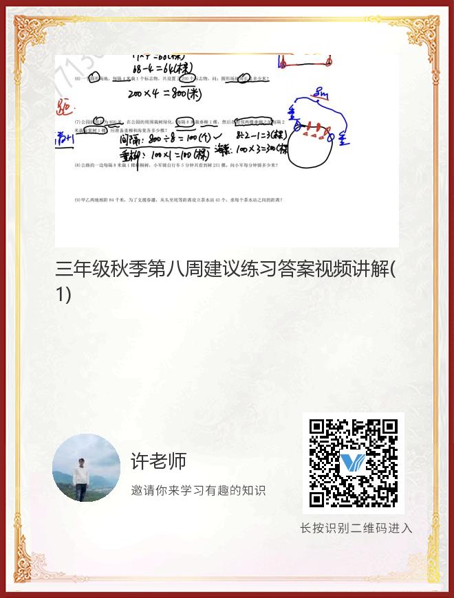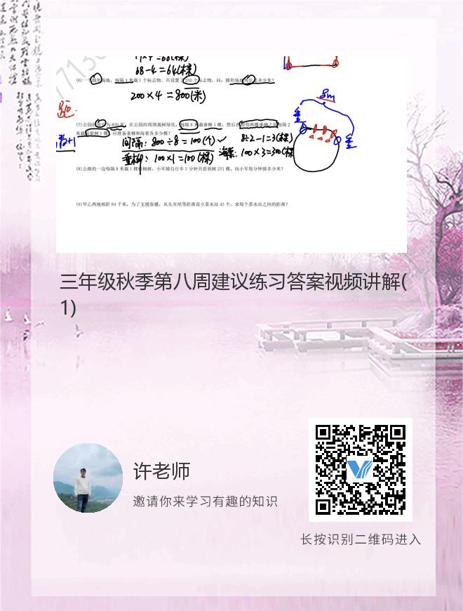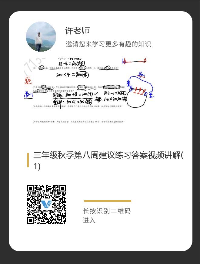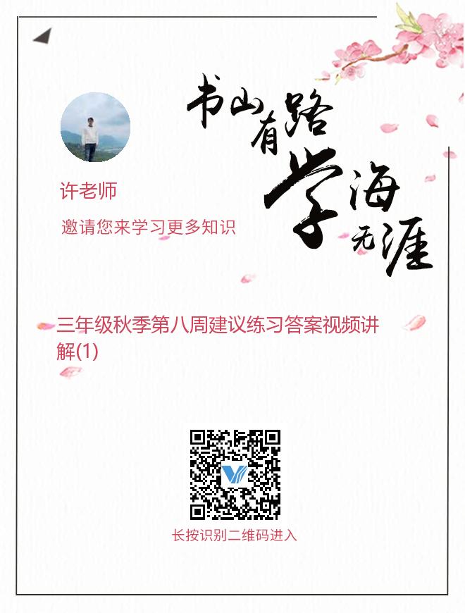 三年级秋季第八周建议练习答案视频讲解(1)