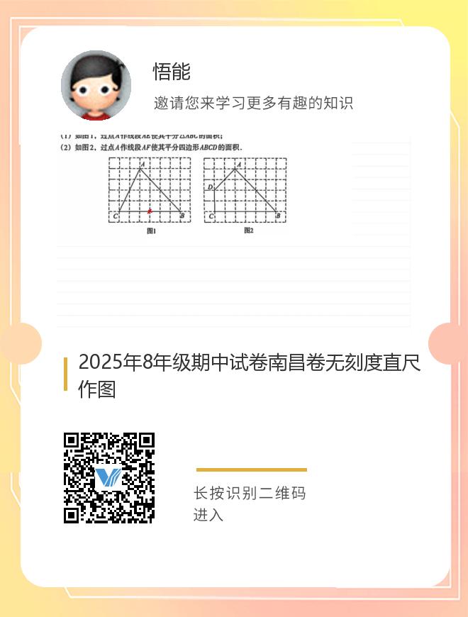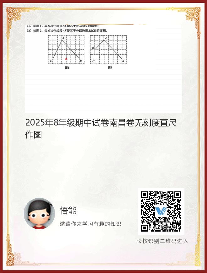 正在播放:2025年8年级期中试卷南昌卷无刻度直尺作图