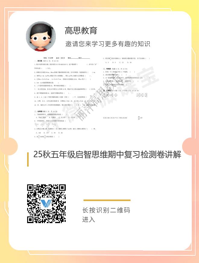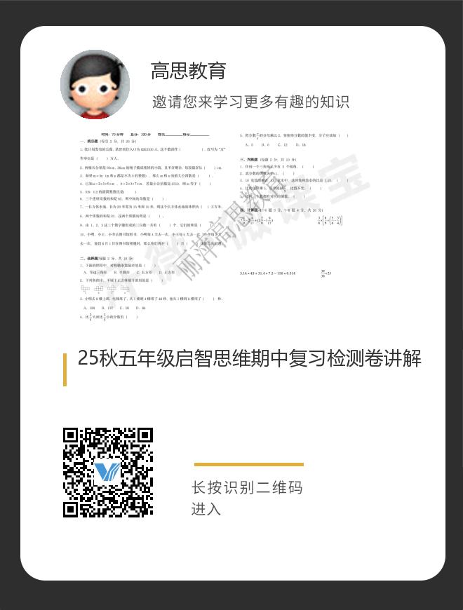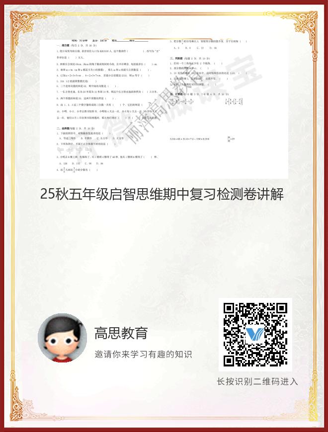 正在播放:25秋五年级启智思维期中复习检测卷讲解