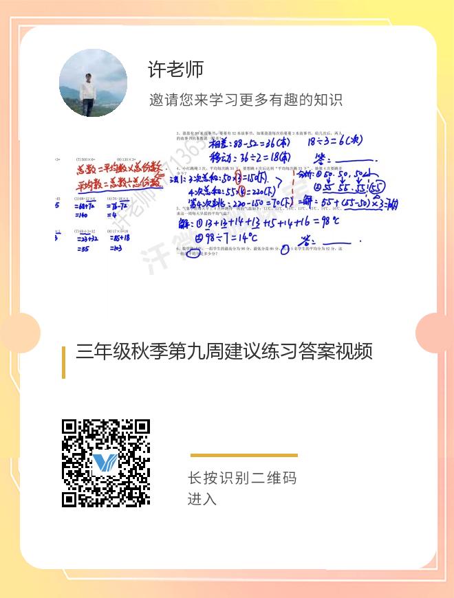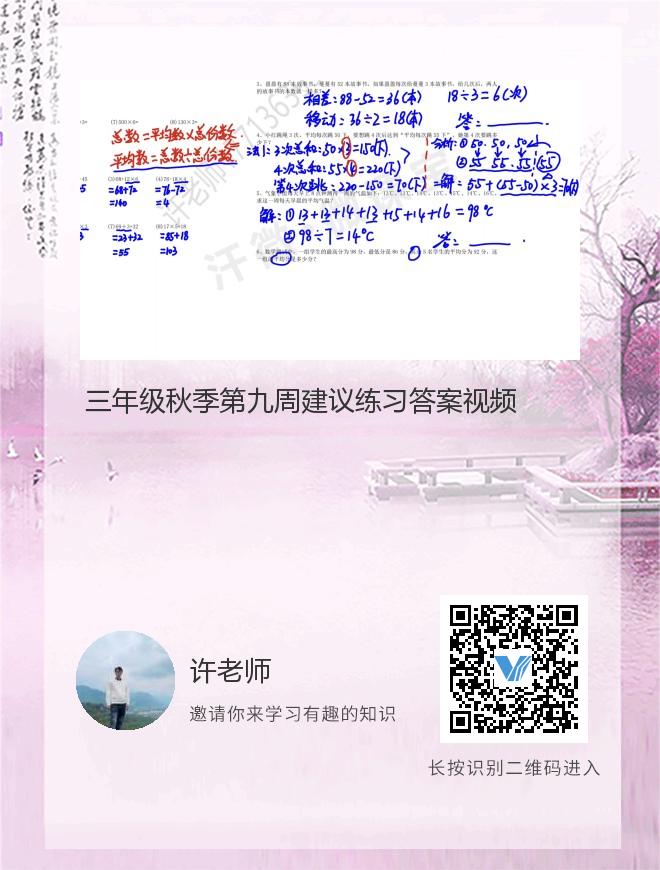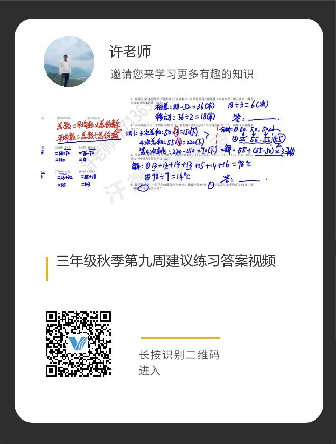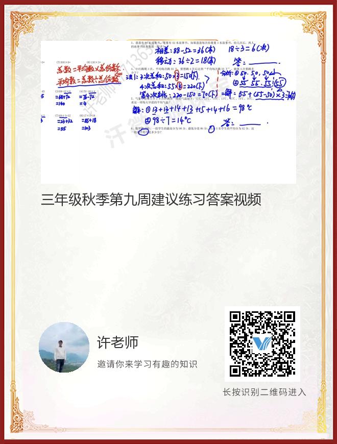 三年级秋季第九周建议练习答案视频