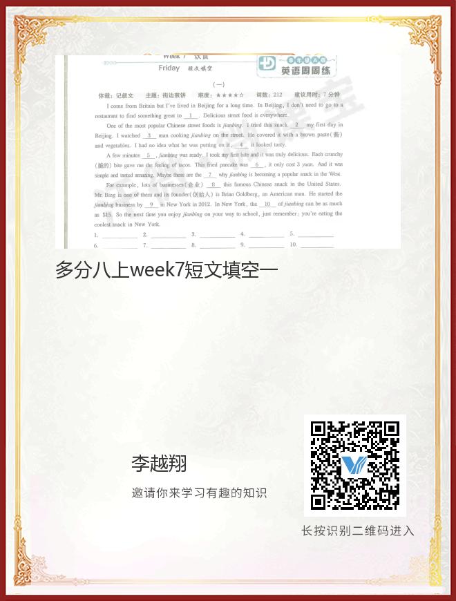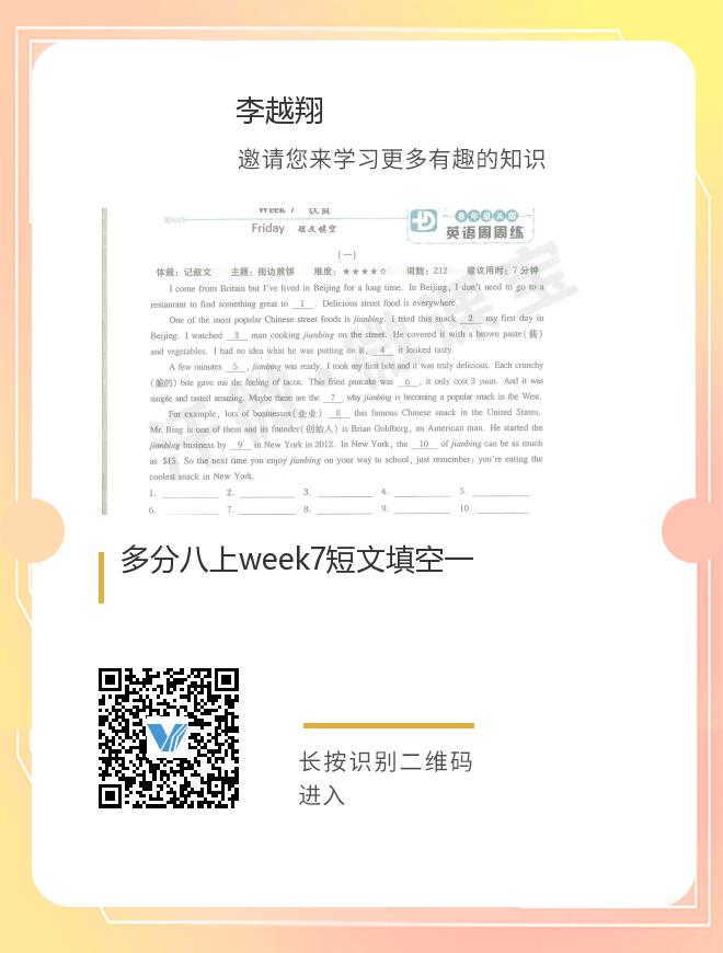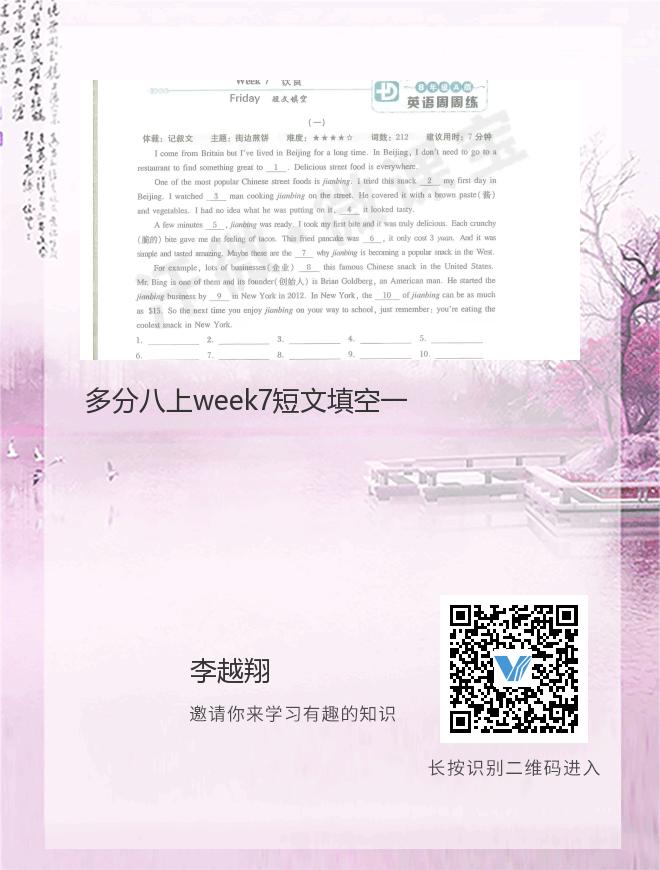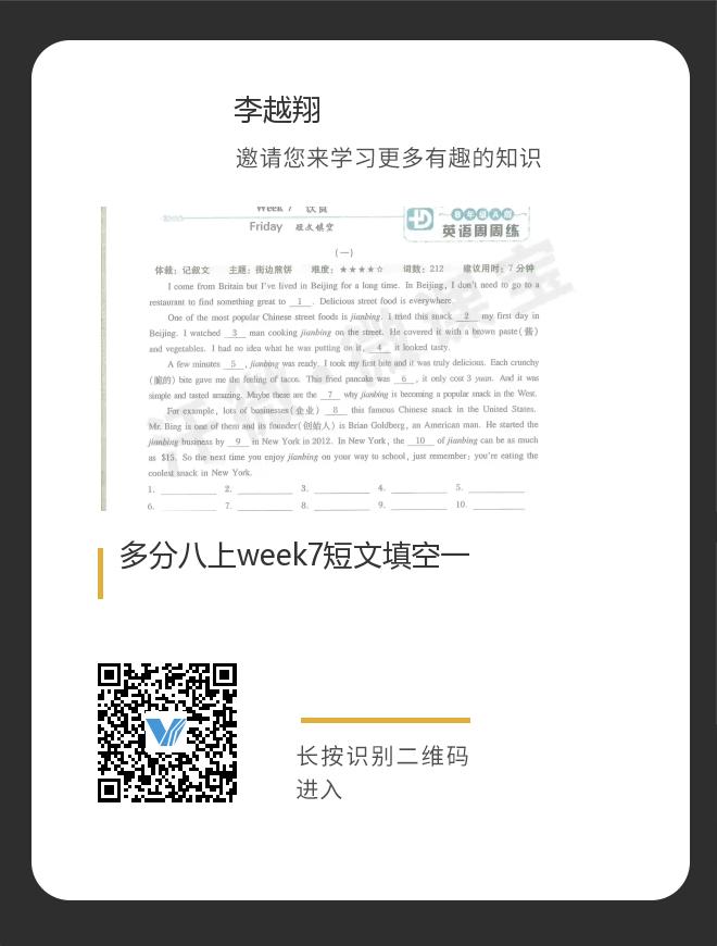 多分八上week7短文填空一