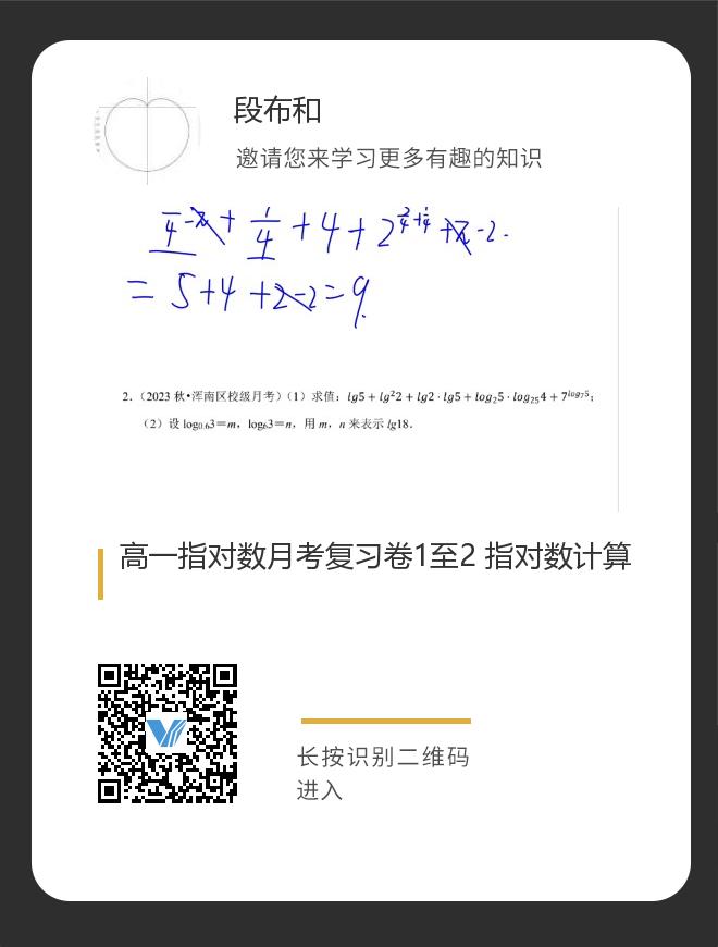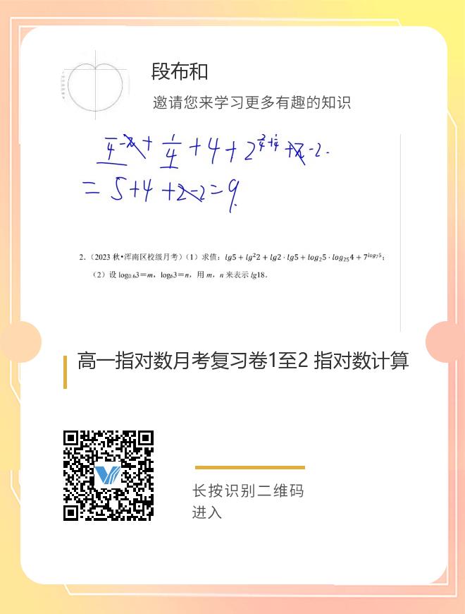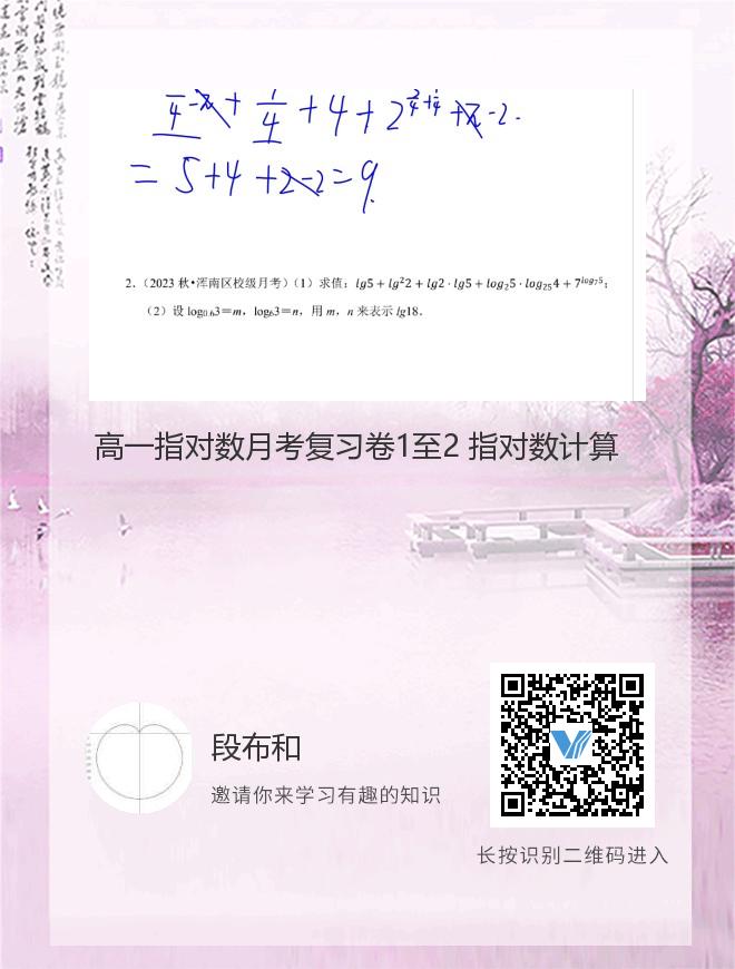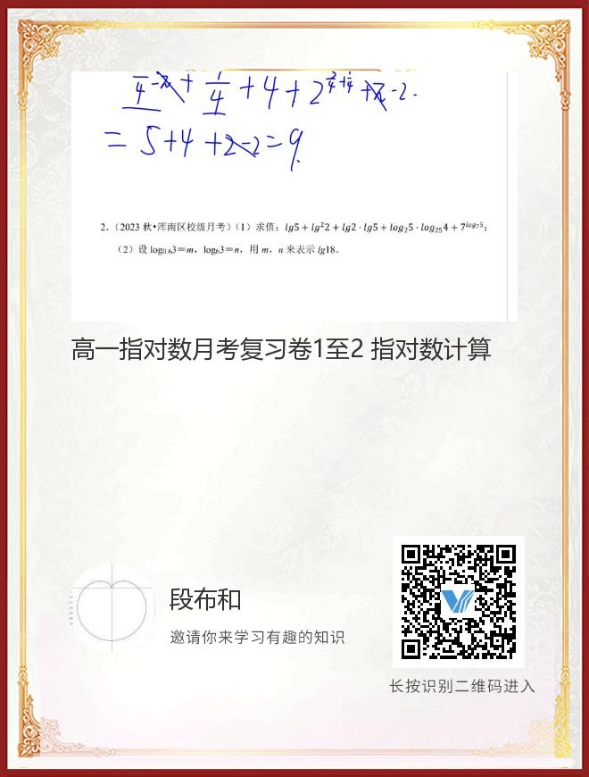 正在播放:高一指对数月考复习卷1至2 指对数计算