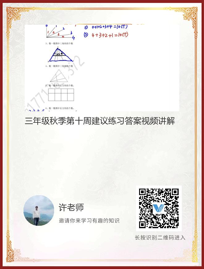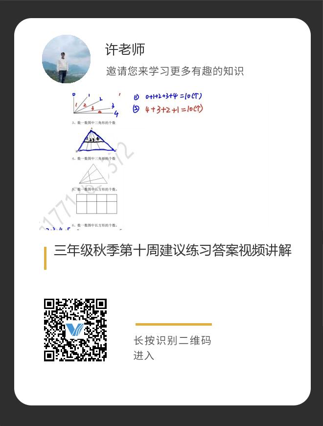 三年级秋季第十周建议练习答案视频讲解