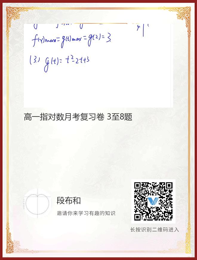 高一指对数月考复习卷 3至8题