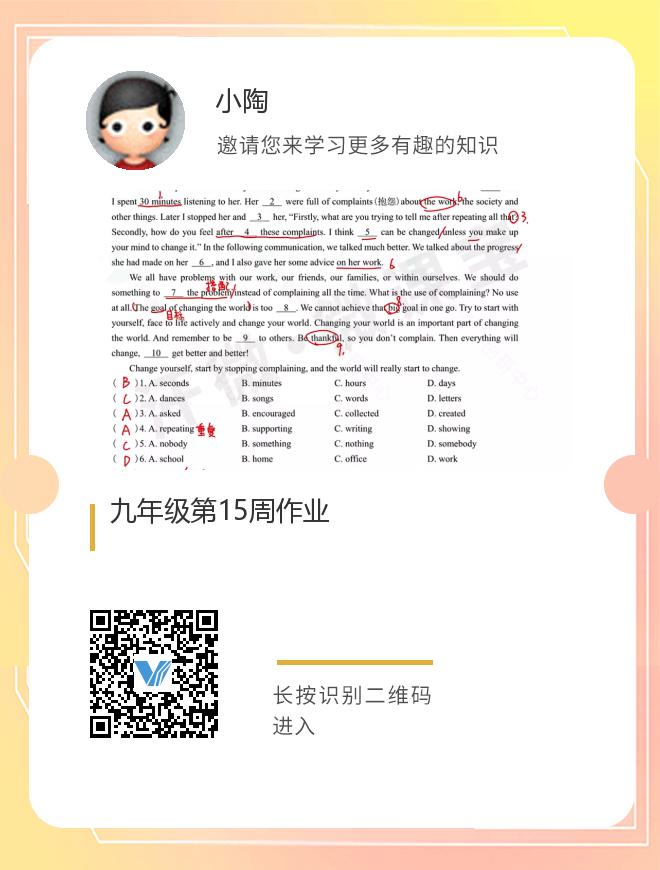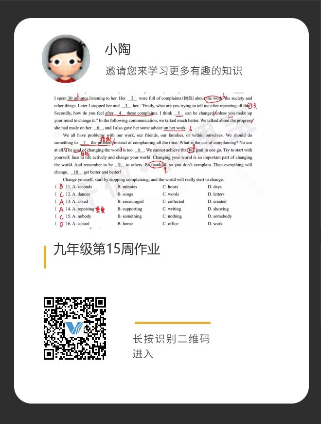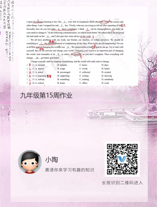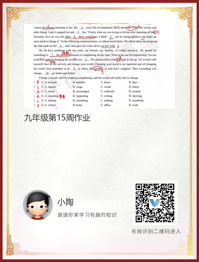 九年级第15周作业