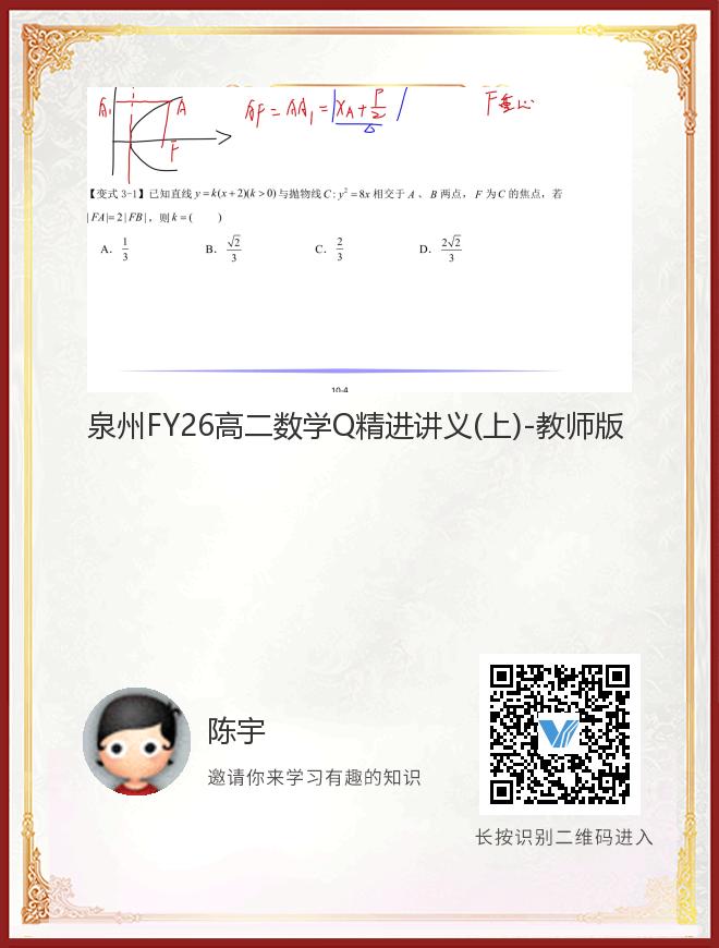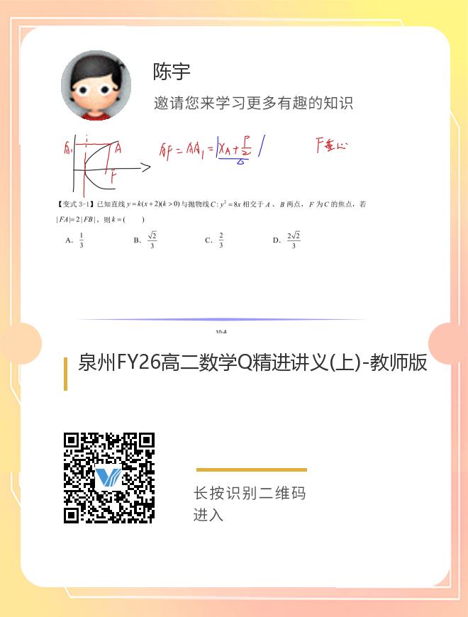 正在播放:泉州FY26高二数学Q精进讲义(上)-教师版