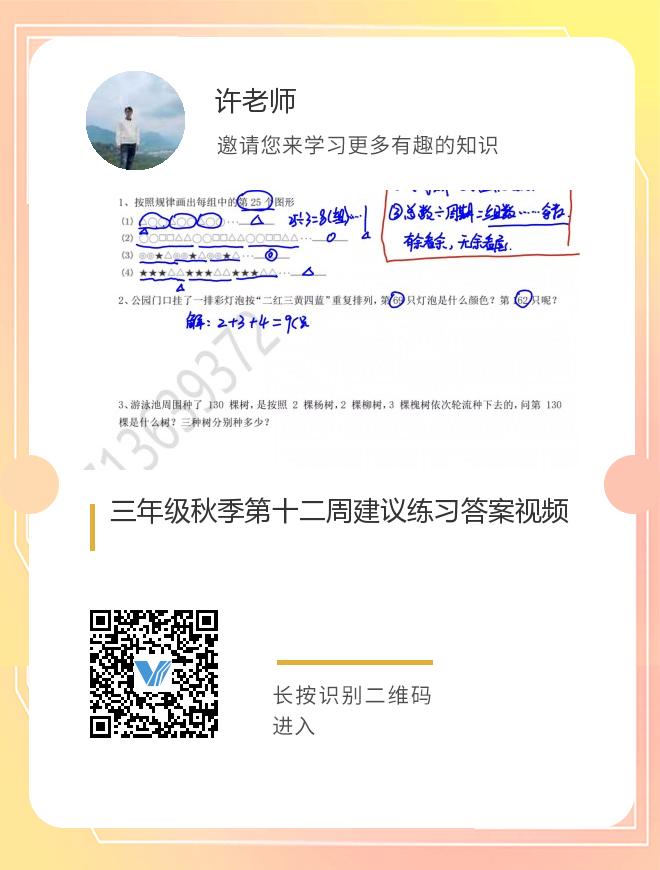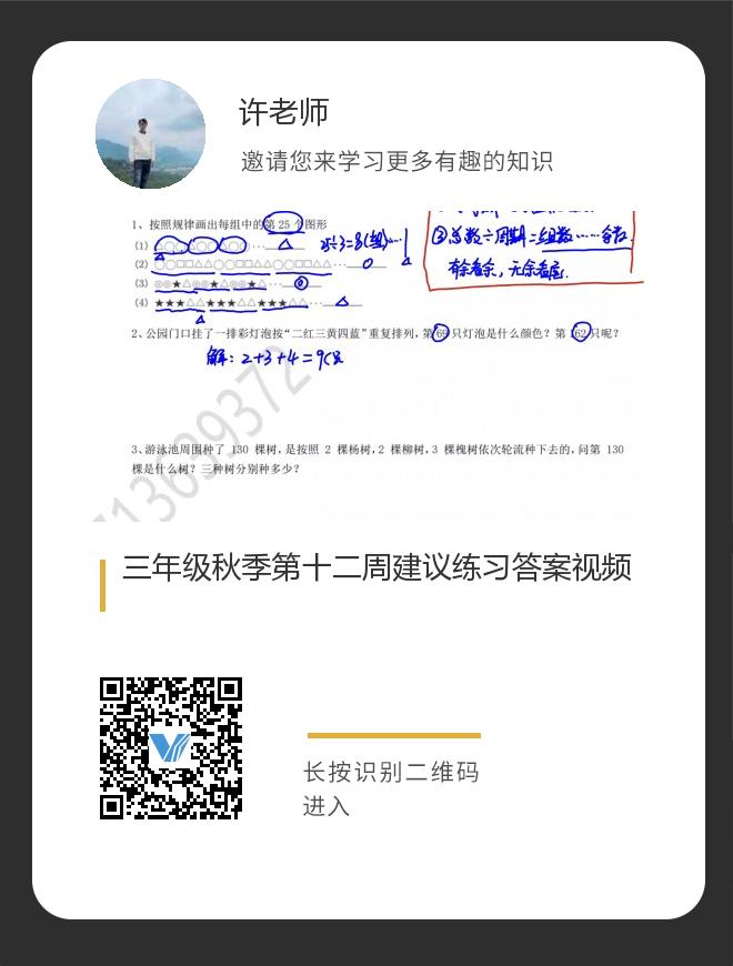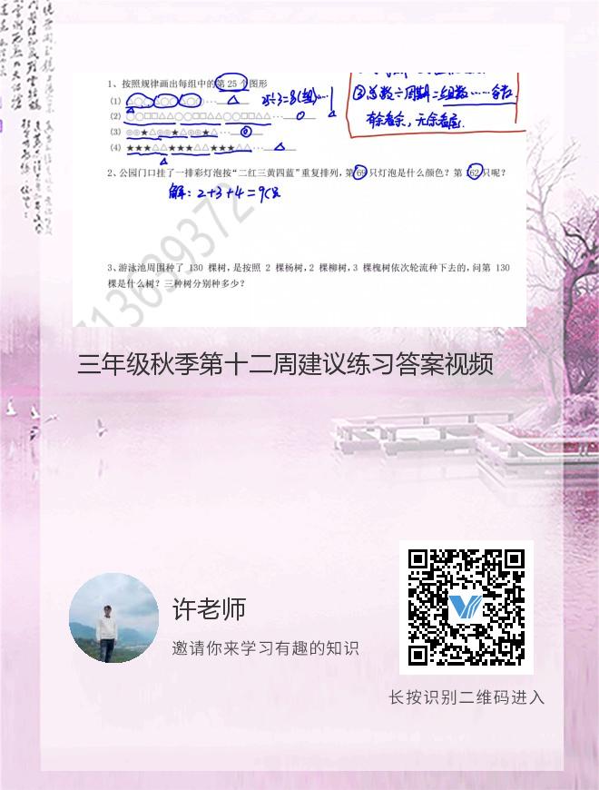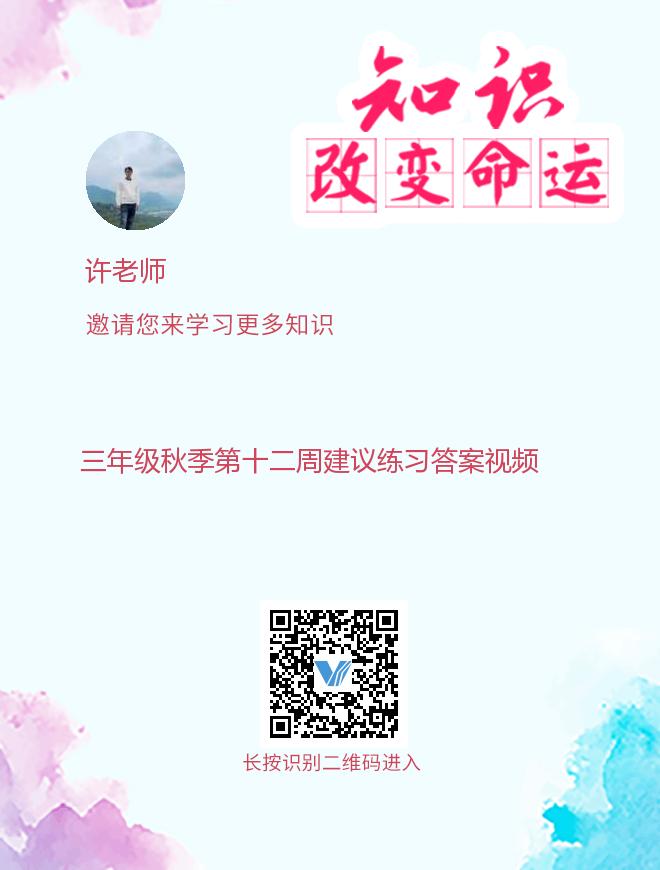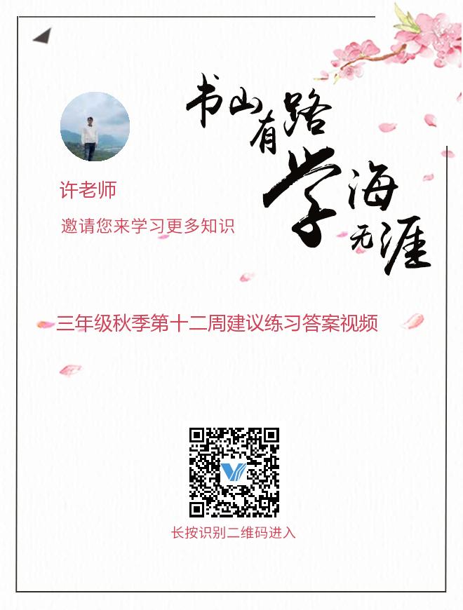 三年级秋季第十二周建议练习答案视频