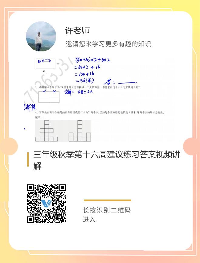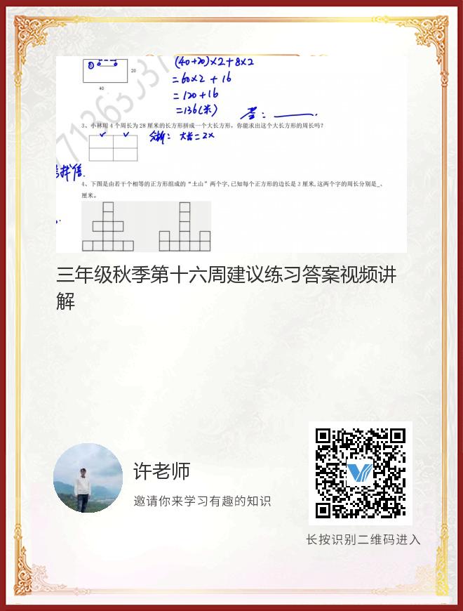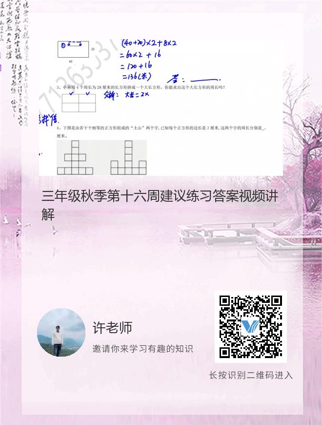 三年级秋季第十六周建议练习答案视频讲解