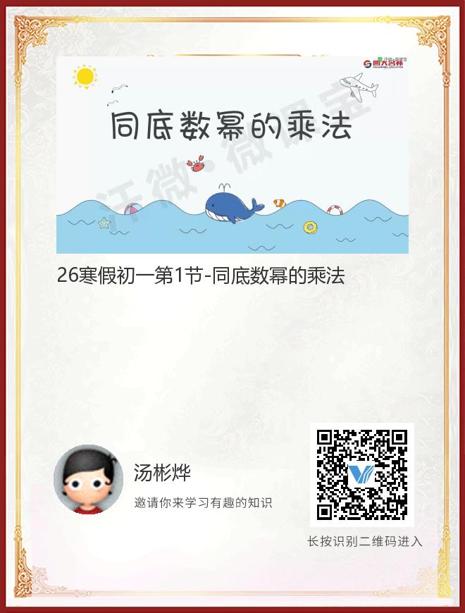 正在播放:26寒假初一第1节-同底数幂的乘法