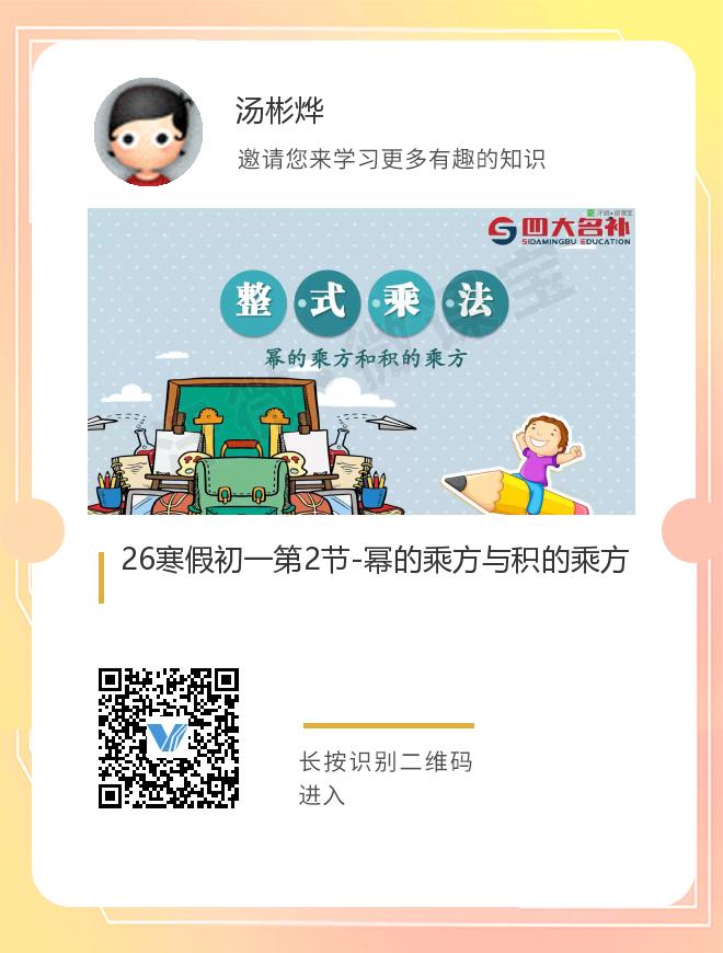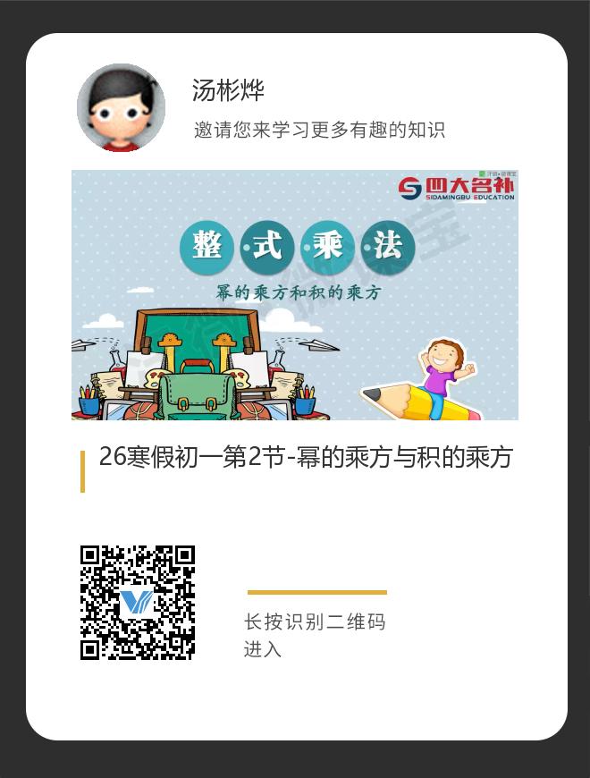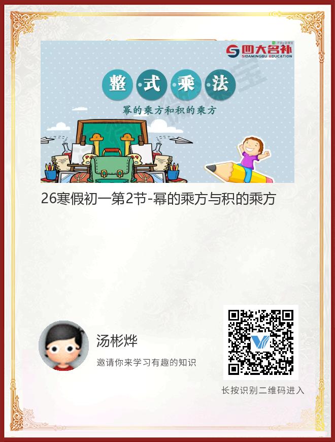 正在播放:26寒假初一第2节-幂的乘方与积的乘方