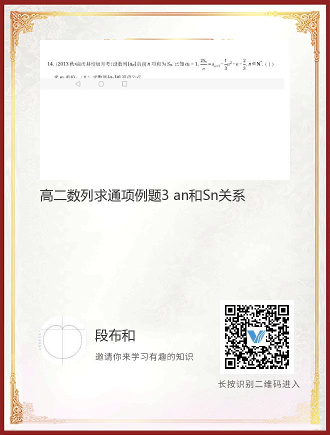 正在播放:高二数列求通项例题3 an和Sn关系