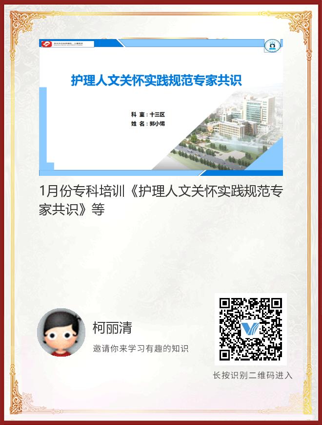 正在播放:1月份专科培训《护理人文关怀实践规范专家共识》等