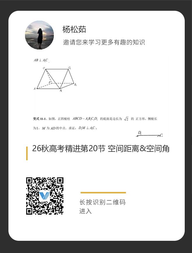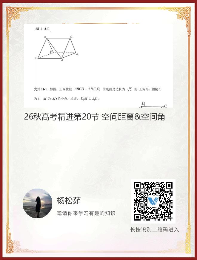 正在播放:26秋高考精进第20节 空间距离&空间角