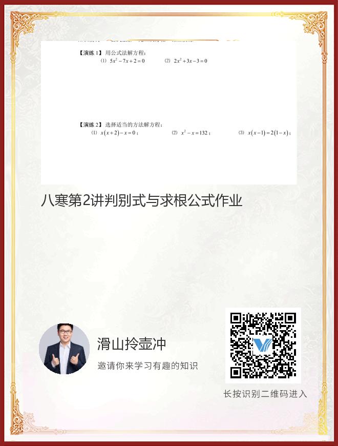 八寒第2讲判别式与求根公式作业